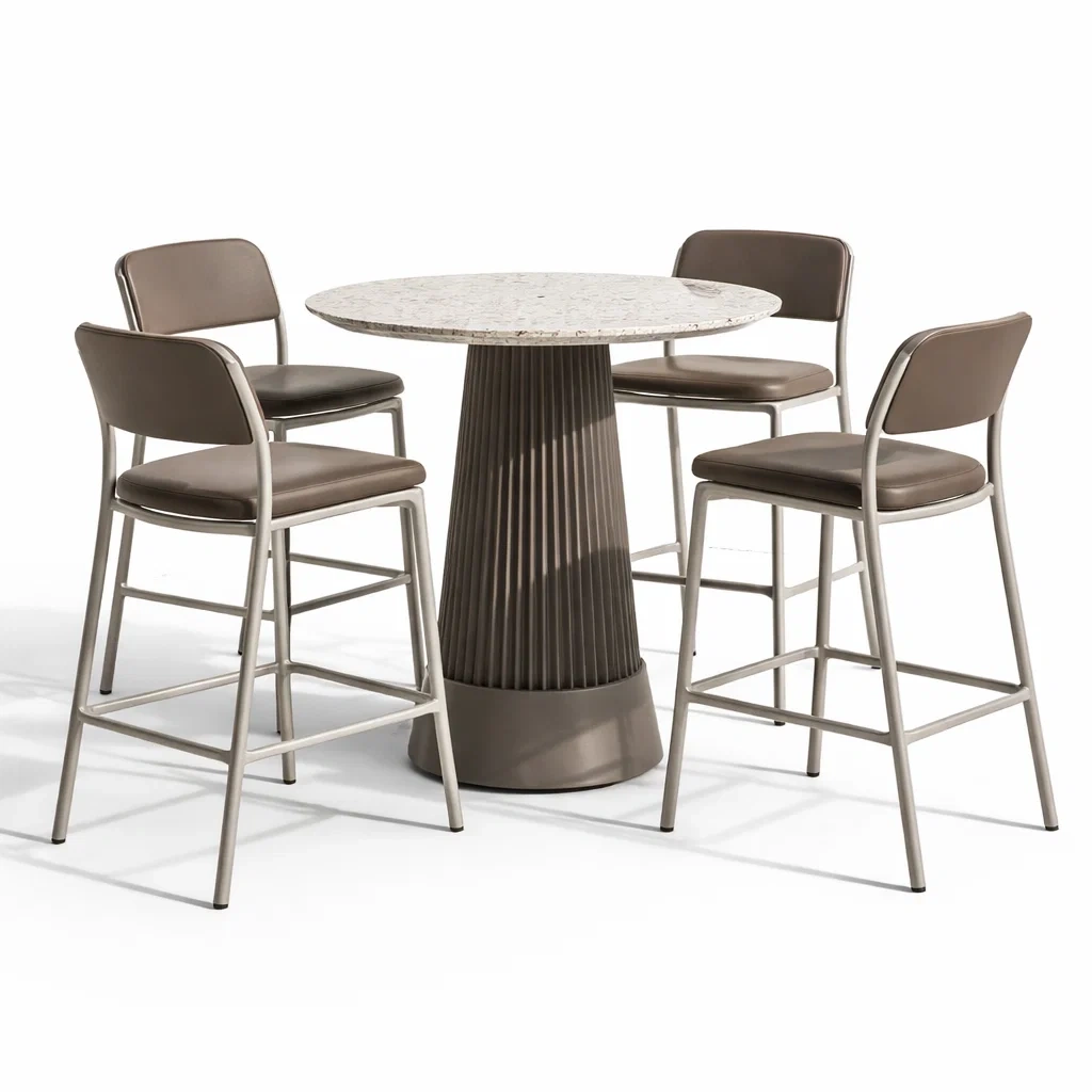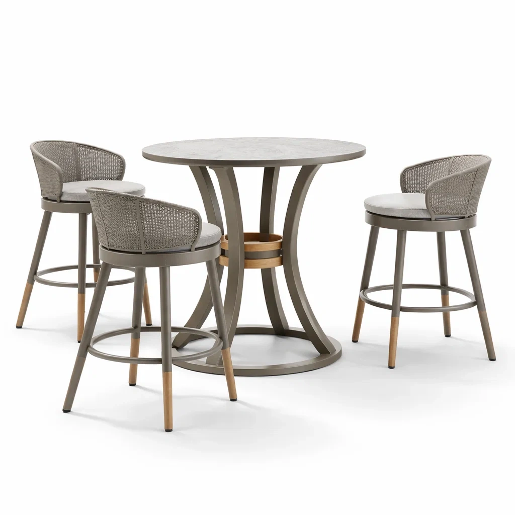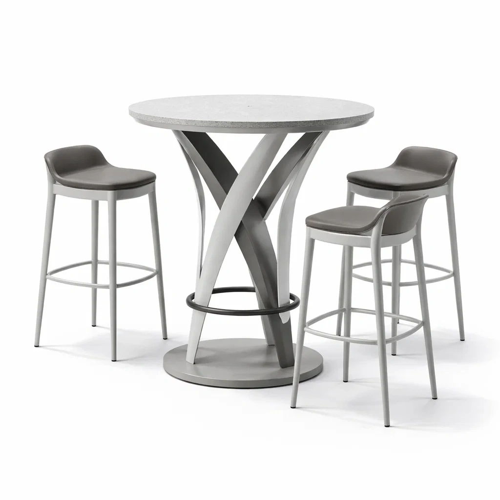 Ensemble table et chaises de bar extérieur en aluminium avec table ronde et chaises