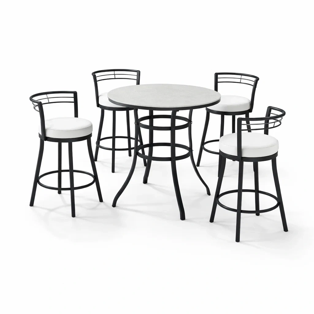 Ensemble table et chaises de bar haute et chaises de bar en métal noir et similicuir blanc