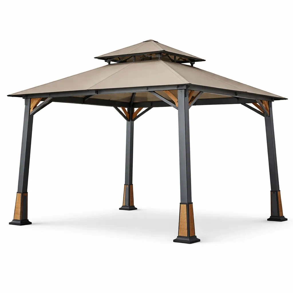 Pavillon jardin aluminium acier beige