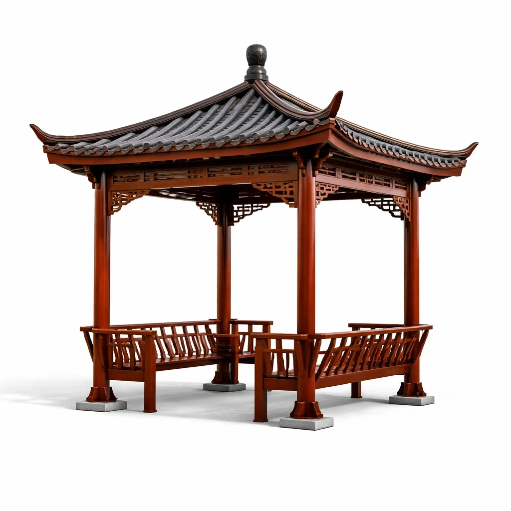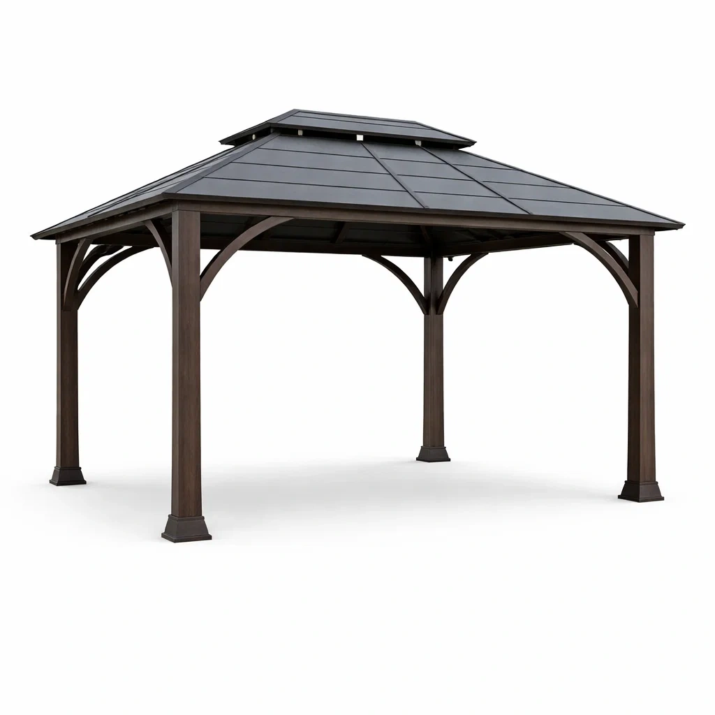 Pavillon en bois massif et tuiles en céramique marron 400x400x350 cm