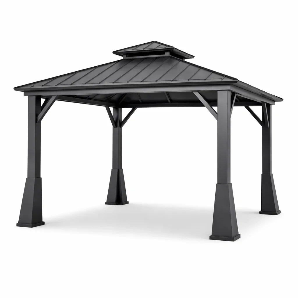 Pavillon de jardin en aluminium noir avec toit en acier