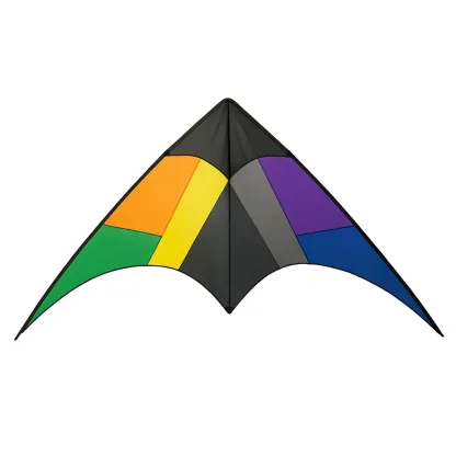 Le cerf-volant est conçu pour une prise en main facile et une montée rapide. Il est décoré de sections de couleurs orange, jaune, vert, noir, gris, violet et bleu pour une visibilité optimale dans le ciel. Grâce à ses matériaux résistants, il peut être utilisé à répétition sans détérioration rapide. Il convient aussi bien aux enfants qu’aux adultes débutants.