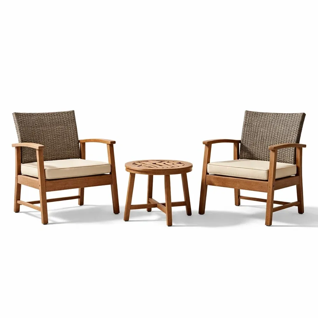 Ensemble de détente 3 pièces en bois d'acacia et rotin synthétique marron/beige