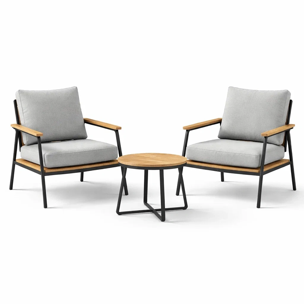 Fauteuils: Gris, Table: Chêne naturel