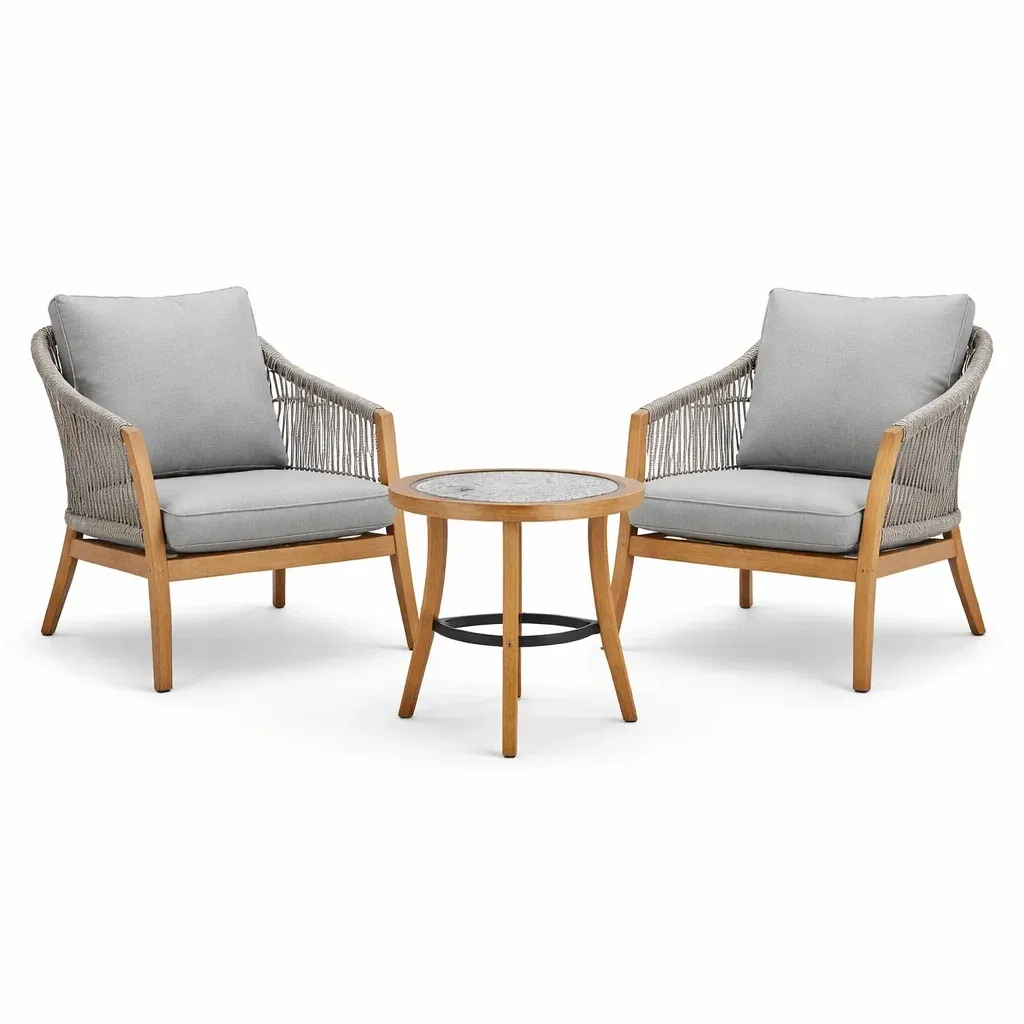Ensemble de détente en bois avec fauteuils et table en corde