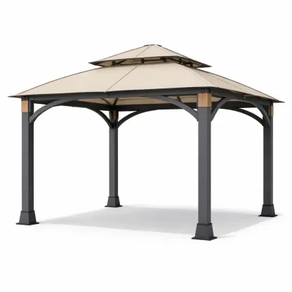 Le pavillon de jardin est fabriqué en aluminium et en acier avec un revêtement en poudre pour une durabilité accrue. La couleur principale est le beige.